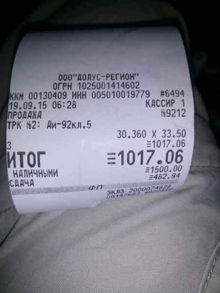 Заправка Бензин (AИ-92) (АЗС "ДОЛУС-РЕГИОН")