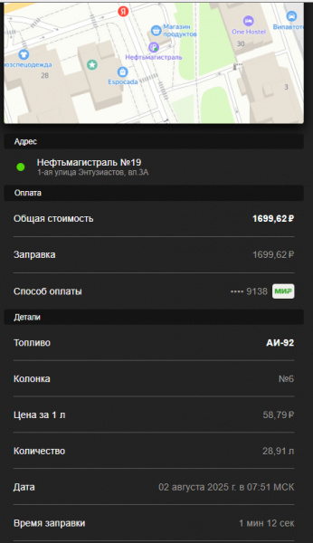 Заправка Бензин (AИ-92) (АЗС "Нефтемагистраль")