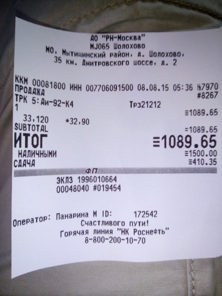 Заправка Бензин (AИ-92) (Транс АЗС)