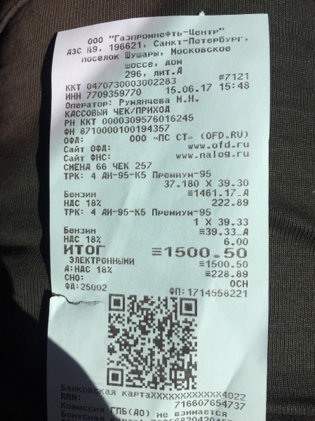 Заправка Бензин (AИ-95) (Газпромнефть)
