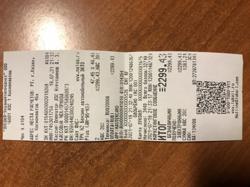 Заправка Бензин (AИ-95) Premium (Лукойл)