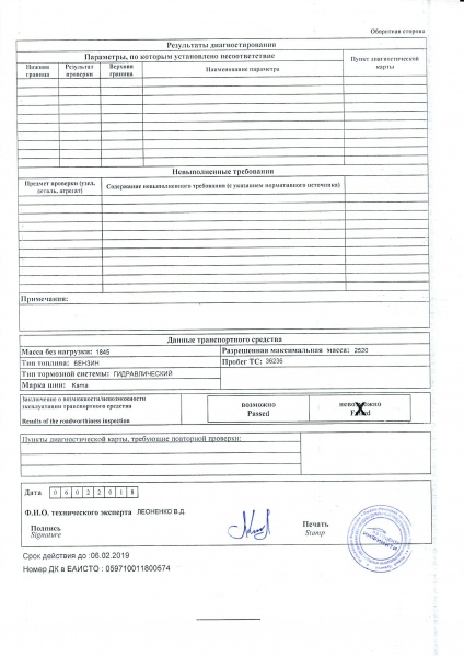 Диагностическая Карта (АЦ "Инфинити")