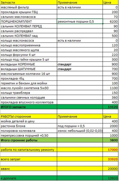 КАПИТАЛЬНЫЙ РЕМОНТ ДВИГАТЕЛЯ | |