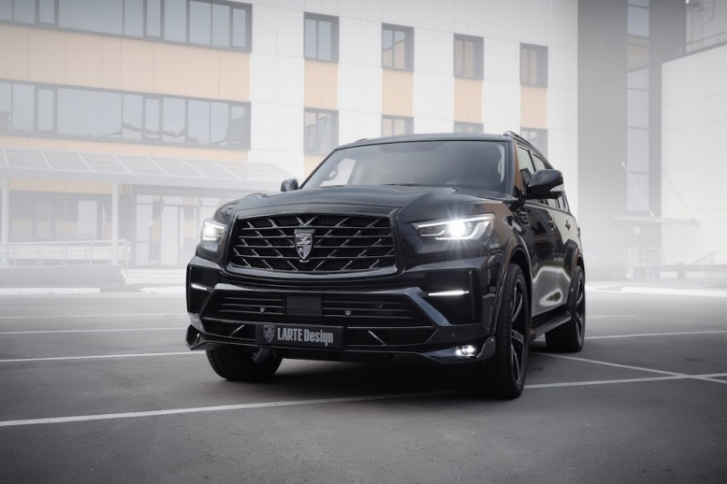 Перед дизайнерами команды LARTE стояла непростая, в то же время интересная задача: раскрыть характер Infiniti QX80, который после обновления модели стал жёстче. Основной акцент при создании нового образа был сделан на передней части Infiniti QX80.