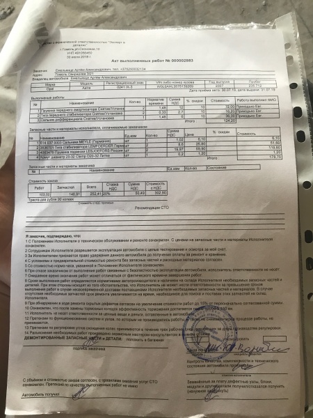 | Агрегат (работа): | Элементы заднего стабилизатора поперечной устойчивости (втулки, стойки) | |