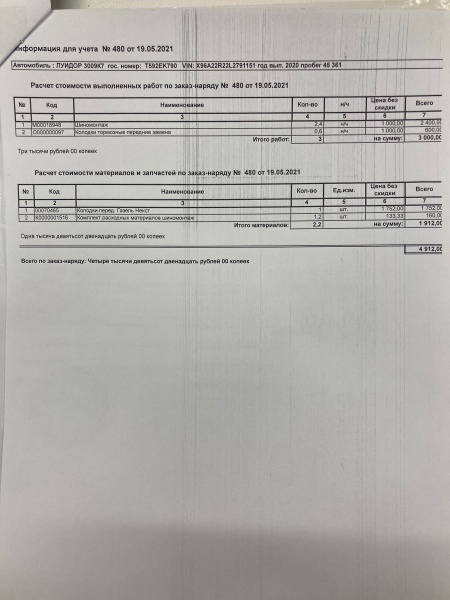 | Агрегат (работа): | Замена тормозных колодок (передние) | |