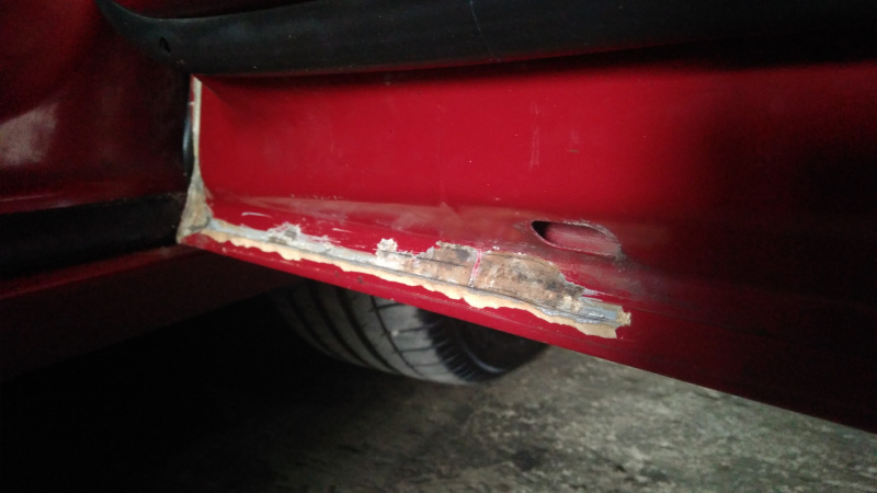Локальная коррозия низа передних дверей, под герметиком. Начальная стадия. Полная зачистка, грунтовка, покраска.