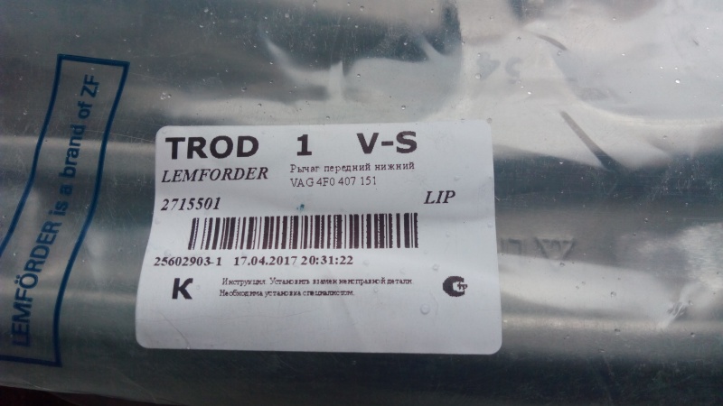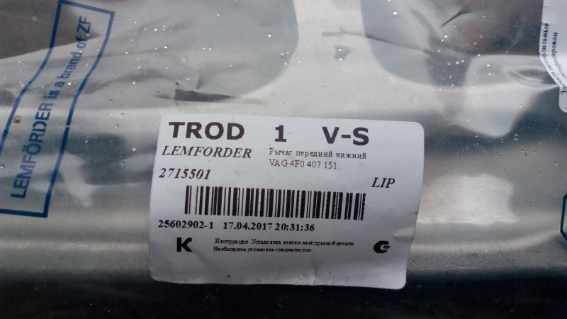 | Агрегат (работа): | Рычаги передней подвески или их элементы (сайлентблоки, шаровые) | |