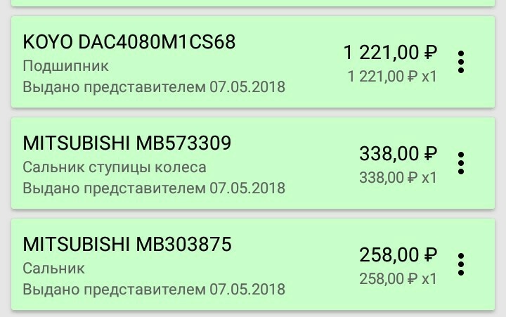 | Агрегат (работа): | Ступицы передних колес | |
