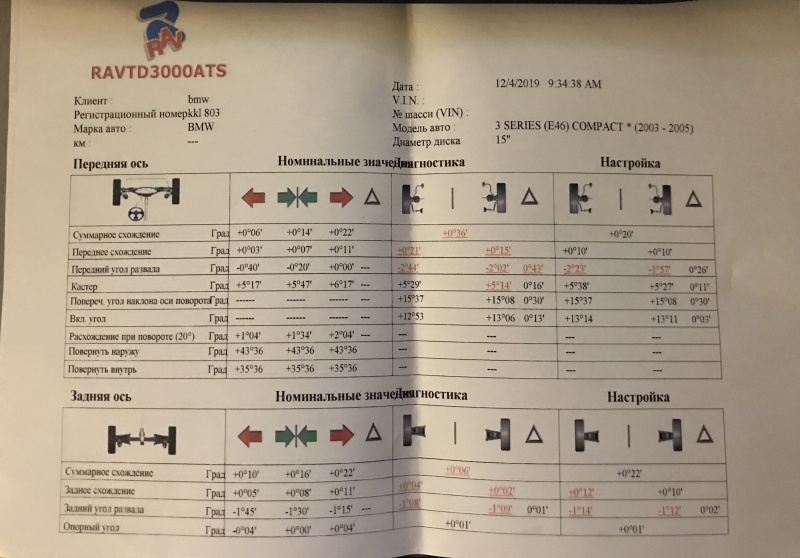 | Агрегат (работа): | развал/схождение | |