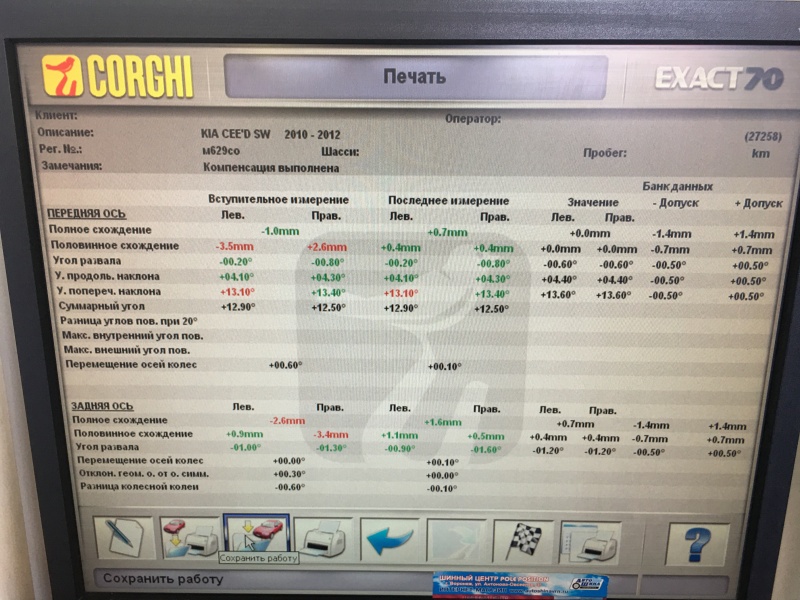 | Агрегат (работа): | Регулировка углов установки колес (развал-схождение) | |
