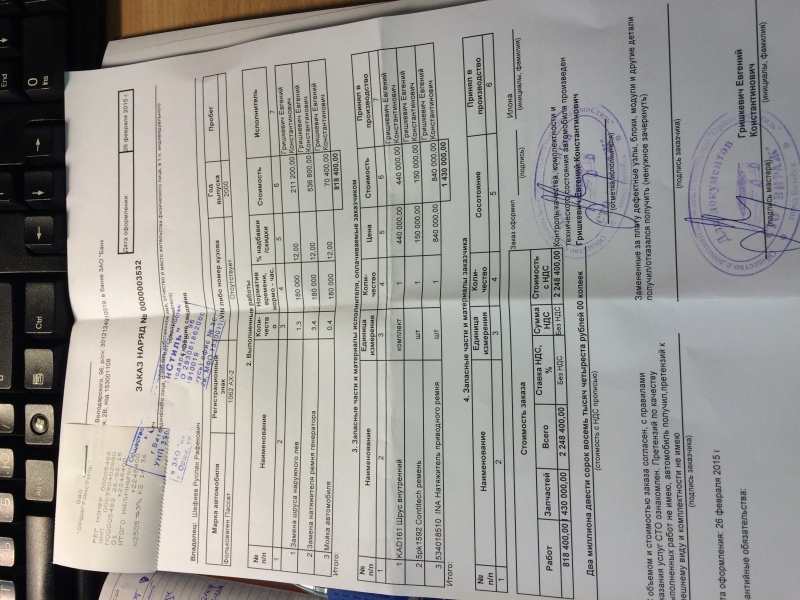 | Агрегат (работа): | Ремни вспомогательных агрегатов | |