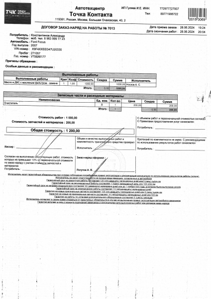 | Название СТО: | ||