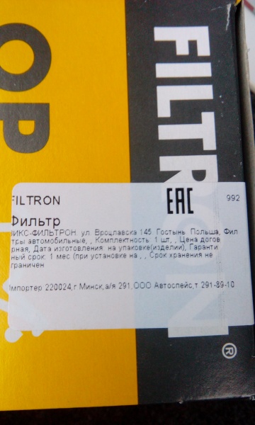 | Производитель: | Filtron | |
