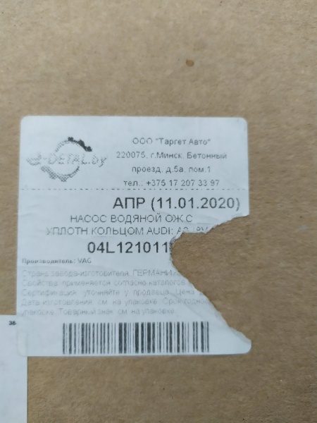 | Агрегат (работа): | Насос охлаждающей жидкости (помпа) | |