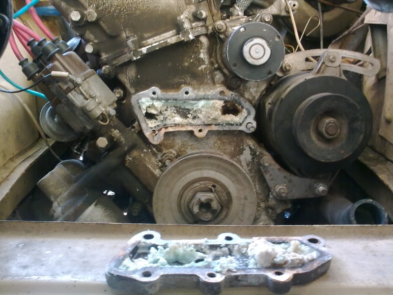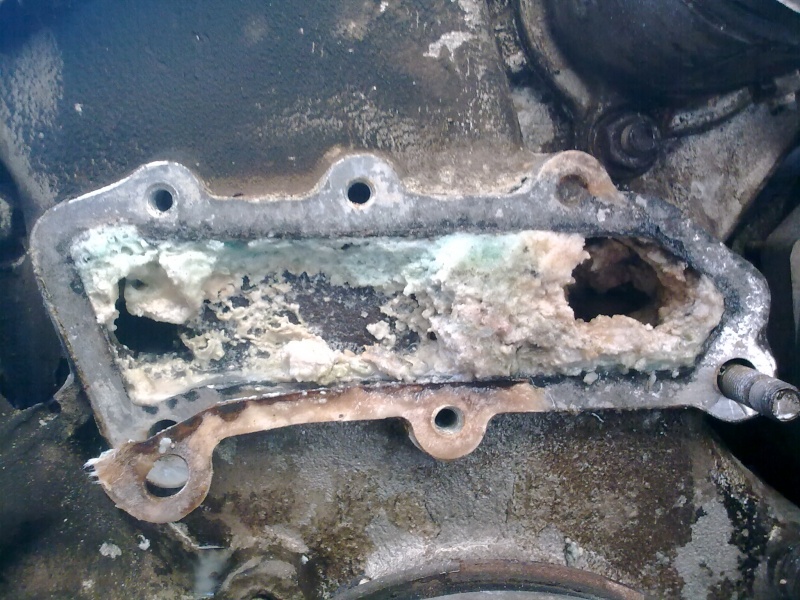 После короткой поездки было обнаружено, что двигатель перегревается, хотя стрелка на приборной панели не поднималась выше 60 градусов. Слил старый тосол (был светлым и прозрачным), поменял термостат и датчик температуры, промыл систему кипяченой водой. После этого ничего не изменилось, те же признаки перегрева. Пришлось снять и промыть радиатор (грязи и отложений почти не было), снять помпу и крышки рубашки охлаждения на блоке. И тут причина обнаружилась. Каналы наглухо были забиты белой и серой кашей (видно на фото). Скорее всего это результат работы двигателя на очень старом тосоле (17 лет). МЕНЯЙТЕ ТОСОЛ ВОВРЕМЯ!!! После чистки каналов, сборки и промывки системы охлаждения залил антифриз Esso Extra . Соотношение: антифриз-4,5 литра дис.вода-5,5 литра. Двигатель стал работать нормально. Стоимость антифриза не учитывал так как он из старых запасов.