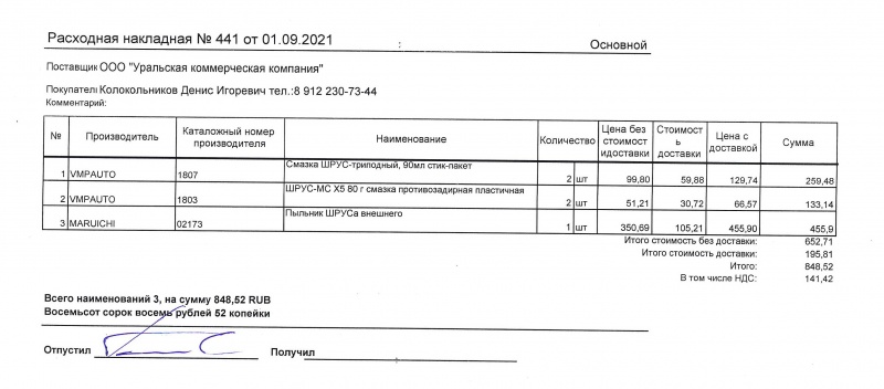 Замена пыльника левого ШРУСа | |