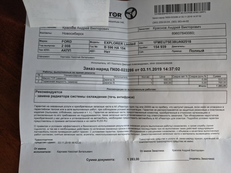 | Агрегат (работа): | Замена масла ГУР | |