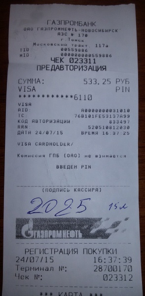 | Пробег: | 2025 км | |