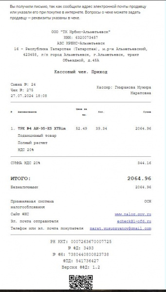 | Цена за литр: | 52.49 RUB | |