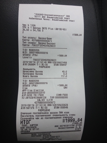 Заправка Бензин (AИ-95) Premium (Лукойл)