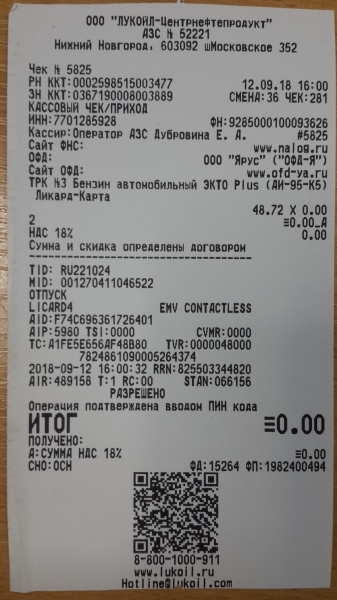 Заправка Бензин (AИ-95) Premium (Лукойл)