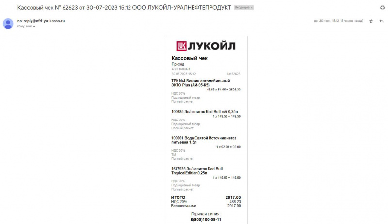 Заправка Бензин (AИ-95) Premium (Лукойл)