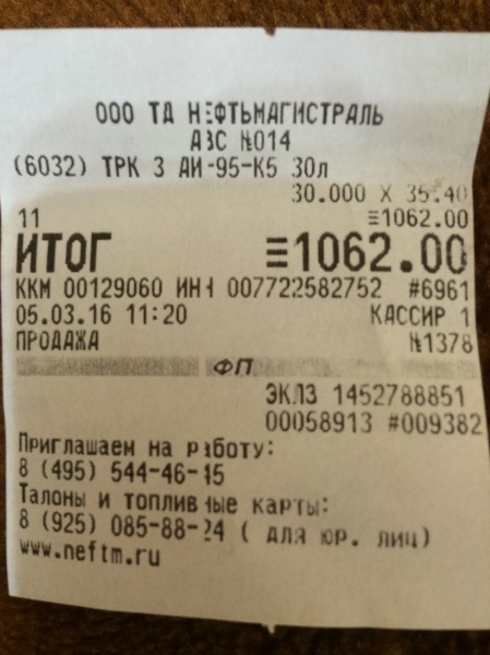 Заправка Бензин (AИ-95) Premium (Нефтьмагистраль)