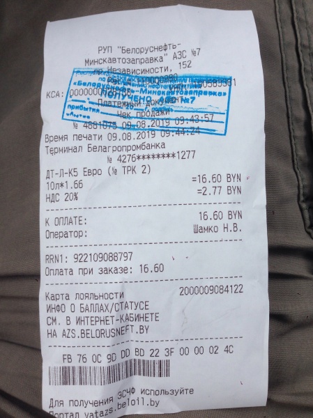 Заправка Дизельное топливо (белоруснефть7)