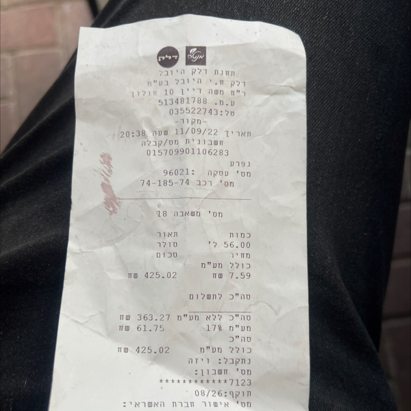 | Общая стоимость: | 425.04 NIS |