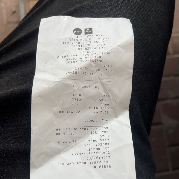| Общая стоимость: | 446.75 NIS |