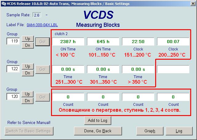 заходим в измеряемые группы 1-го диска, 95, 96 и 97. Считываем параметры.