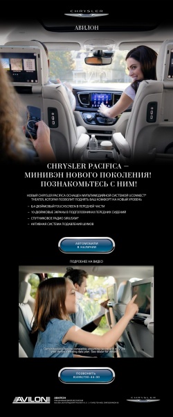 Что Вам известно о новом Chrysler Pacifica? Chrysler АВИЛОН с удовольствием продемонстрирует Вам все его преимущества!