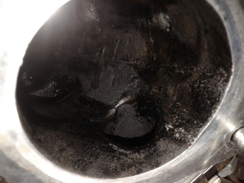 Хочу заметить, что за 5 лет двигатель абсолютно не беспокоил, даже по мелочам, разве что немного вырос расход топлива в городском режиме (летом до 8л, зимой до 10л). Собственно, это обстоятельство и банальное любопытство заставило меня сделать этот шаг. Благо, что для визуального осмотра коллектора достаточно открутить четыре гайки корпуса дроссельной заслонки (самой дроссельной заслонки нет, только пластмассовый корпус – труба соединитель) и снять его вместе с патрубком интеркулера и вот он, весь ужас предстаёт перед взором! Мачмала типа сажа+масло толщиной с палец не сулила ничего хорошего.
