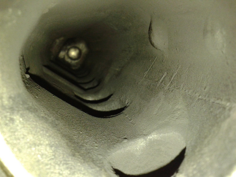 Еще хотел написать про каналы впуска на самой головке. Они, в принципе, были не сильно закоксованы, поэтому я их ничем пшикать не стал, очистил, насколько смог, просто пальцем, обмотав его сухой тряпкой. Делать всё нужно аккуратно, чтобы куски сажи и отложений не попали на клапан и в цилиндр.