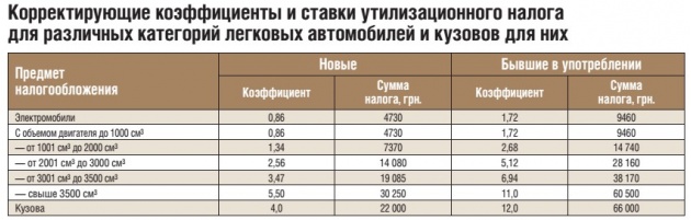 Так, базовая ставка для легковых автомобилей и кузовов для них составляет 5,5 тыс. грн., а для грузовиков и автобусов — 11 тыс. грн. Но с корректирующими коэффициентами размер утилизационного сбора будет существенно выше.