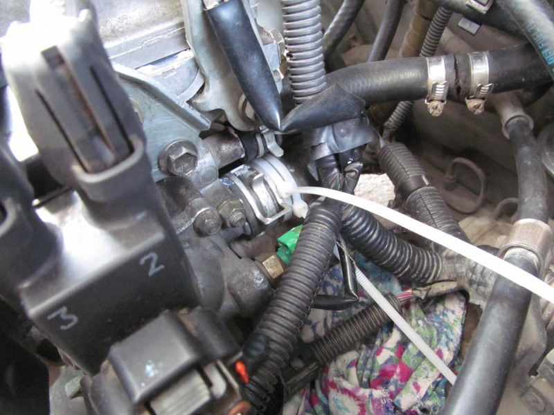 Пришлось повозиться опять с антифризом. Патрубок был посажен на герметик + пластиковые хомуты (других под рукой не оказалось).