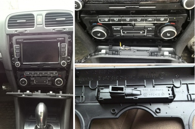 Берем все тот же непонятный предмет желтого цвета (которым мы расправлялись с рамкой магнитолы ) и повторяем уже знакомые нам действия - снимаем эту самую рамочку, вместе с ней и рамку климата. Аккуратно! Не нужно тянуть нижнюю часть рамки, она прикреплена проводком! Вынимаем разъемчик и переставляем его вместе с маленькой пластиковой коробочкой с надписью "passenger air bag" в новую рамку климата.
