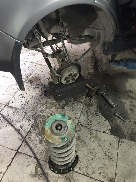 Прокачка правого заднего амортизатора,левый задний ремонту не подлежит-газ травит из-под завальцовки сальника штока.Пришлось неисправный ставить на место и ездить,пока не придёт новый.2*1200-с/у,2000р-работа по прокачке амортизатора.