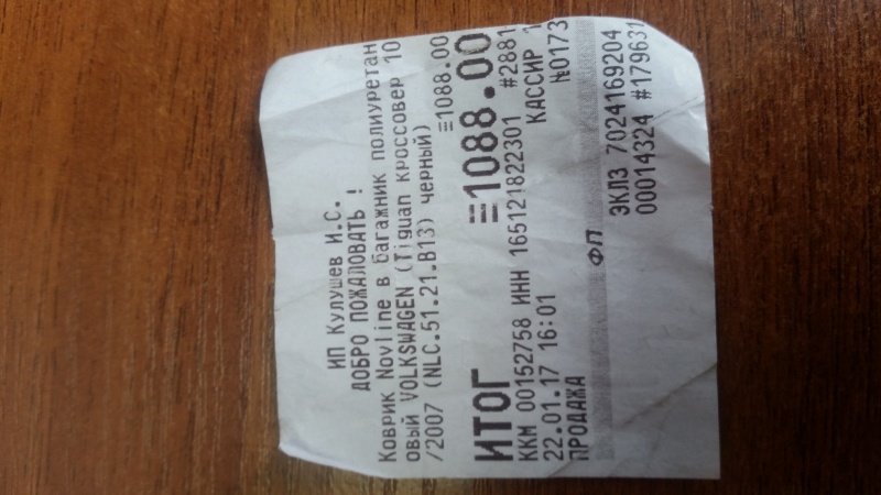 | Название детали: | Коврик в багажник | |