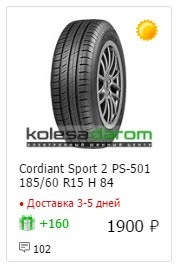 | Агрегат (работа): | Шины летние | |