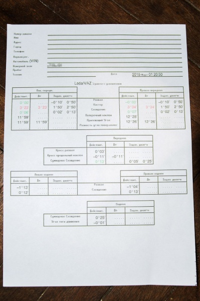 | Агрегат (работа): | Регулировка углов установки колес (развал-схождение) | |