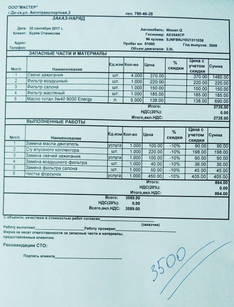 Замена масла (4л), фильтров салона, маслянный, воздушный.