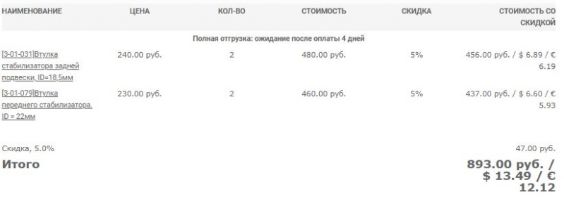 | Общая стоимость: | 456.00 RUB | |