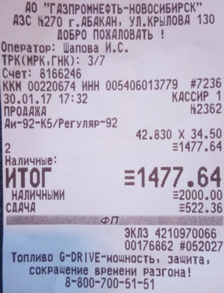 Заправка Бензин (AИ-92) (Газпромнефть)