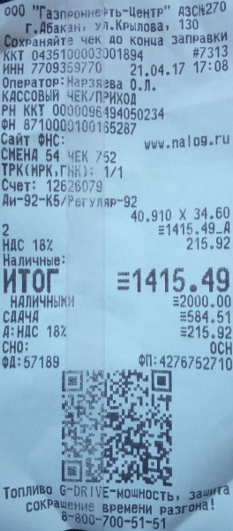 Заправка Бензин (AИ-92) (Газпромнефть)