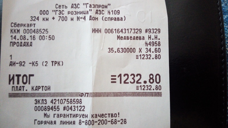 Заправка Бензин (AИ-92) (ГП АЗС№109, М-4, 324км)