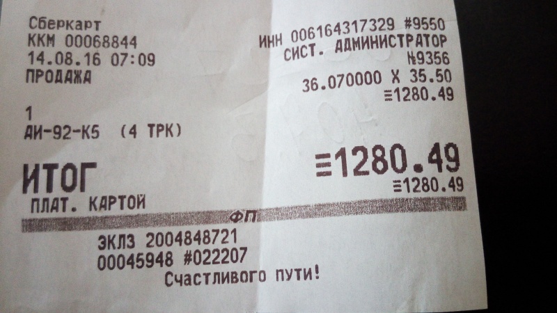 Заправка Бензин (AИ-92) (ГП АЗС№126,ВоронежскаяОбл,М-4,731км)