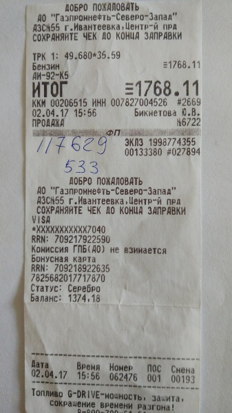 Заправка Бензин (AИ-92) (ГПН-СЗ АЗС№55,Ивантеевка.)