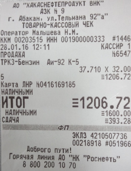 Заправка Бензин (AИ-92) (Роснефть)